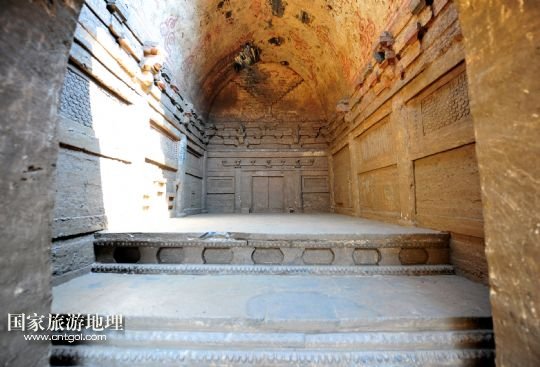 國家旅游地理 湖北襄陽8月7日訊 8月7日拍攝的湖北谷城縣肖家營仿木磚雕壁畫墓。當日,湖北省襄陽市谷城縣肖家營北宋仿木磚雕壁畫墓內(nèi)部清理完畢,考古專家認定墓中的宋代仿木磚雕、壁畫是湖北至今發(fā)掘的同時代古墓中保存最為完好的。