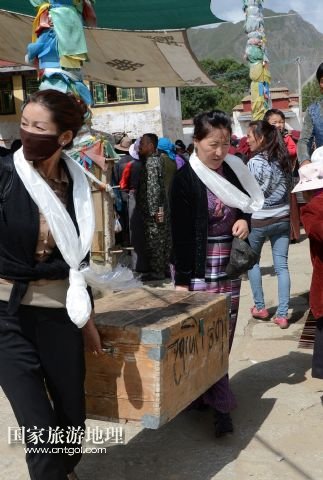 國家旅游地理 西藏拉薩8月9日訊 8月6日,在西藏堆龍德慶縣乃瓊鎮(zhèn)甲熱村,覺木隆藏戲團團長瓊達(前右)在演出后和團員一起搬運道具。藏戲是藏族人民喜聞樂見的藝術形式,而發(fā)源于甲熱村(舊稱覺木隆)的覺木隆藏戲在藏戲各流派中流傳最廣。