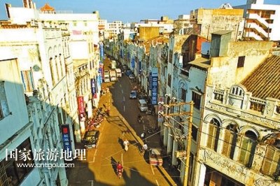 國家旅游地理 海南???月24日訊 海口騎樓歷史文化街區(qū)(簡稱騎樓老街),是??谧罹咛厣慕值谰坝^。2009年6月10日,首屆“中國歷史文化名街評選推介”活動在北京揭曉,??隍T樓老街榜上有名。??隍T樓老街以其唯一性、獨特性榮獲首批十大“中國歷史文化名街”稱號。從2010年開始,海口市已啟動騎樓老街改造項目。海口騎樓老街已成為了解??诔鞘袣v史的活畫冊。