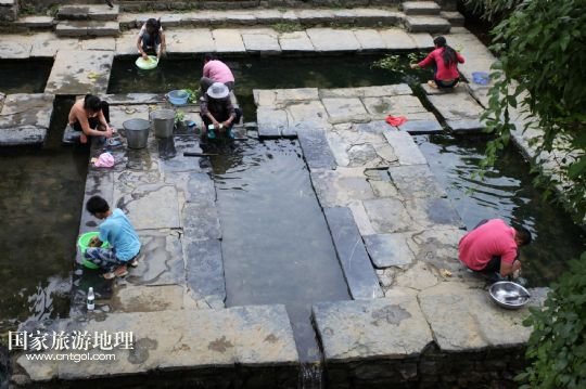 9月26日,在廣西昭平縣黃姚古鎮(zhèn),人們在一口古井旁洗菜、洗衣服。
