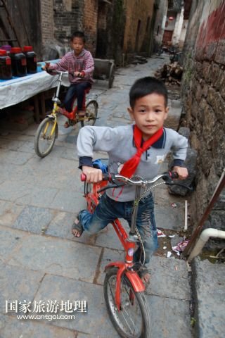 9月26日,孩子們在廣西昭平縣黃姚古鎮(zhèn)騎自行車。