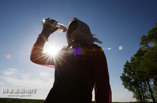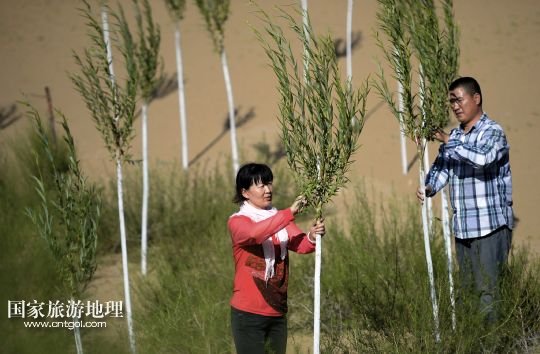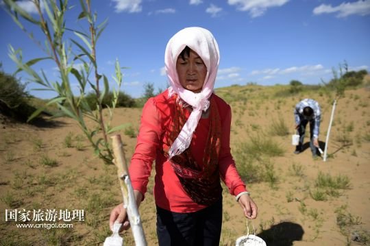國家旅游地理 寧夏銀川10月11日訊 圖為顧蕓香(8月14日攝)  14年來,寧夏靈武農(nóng)民顧蕓香的心,不知隨著沙漠里的樹“生生死死”了多少回。