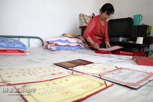 顧蕓香在展示獲得的獎狀(7月23日攝)。
