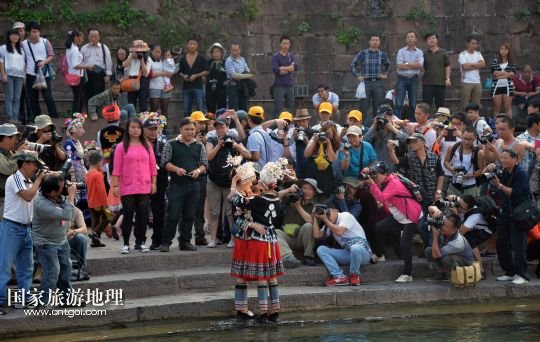 國家旅游地理 湖南湘西10月14日訊 10月13日,來自貴州的苗族群眾在鳳凰古城游覽。10月13日,湖南鳳凰古城舉辦第四屆苗族銀飾服飾文化節(jié),來自全國各地苗族聚居區(qū)的17支苗族隊(duì)伍盛裝出席,展示傳統(tǒng)苗族民俗文化,并在鳳凰古城內(nèi)幾個(gè)主要景區(qū)進(jìn)行苗服盛裝巡游。 /新華社記者趙眾志攝