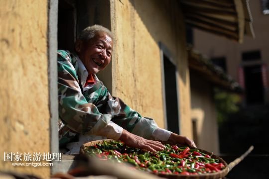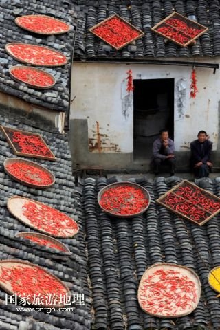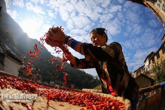 國家旅游地理 安徽黃山11月11日訊 11月10日,黃山市歙縣霞坑鎮(zhèn)湖山村住戶的屋頂晾曬著各種農(nóng)作物。秋末冬初,安徽省皖南黃山市歙縣鄉(xiāng)村農(nóng)戶種植的玉米、南瓜、辣椒等農(nóng)作物陸續(xù)收獲,古村中房前屋后、庭院屋頂曬滿果實(shí),構(gòu)成一幅幅美麗的“曬秋圖”。 /新華社發(fā)(施廣德 攝)
