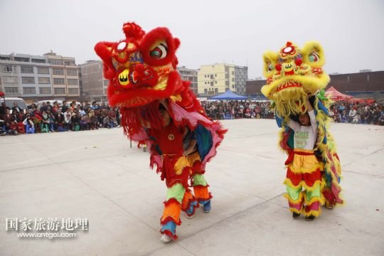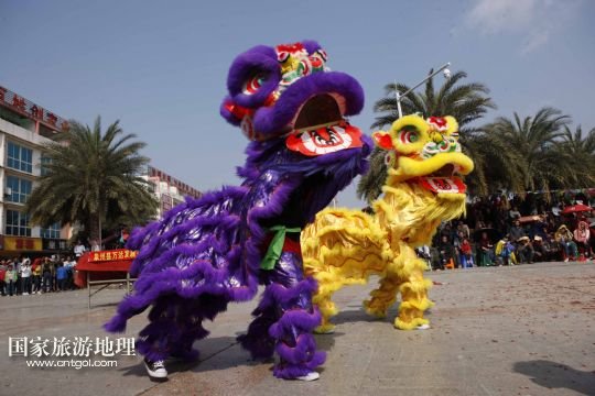 國(guó)家旅游地理 廣西來(lái)賓2月5日訊 2月4日,廣西象州縣的農(nóng)民舞獅隊(duì)在參加獅王爭(zhēng)霸賽。春節(jié)期間,廣西壯族自治區(qū)來(lái)賓市象州縣舉行獅王爭(zhēng)霸賽,來(lái)自該縣的32支農(nóng)民舞獅隊(duì)一展技藝、爭(zhēng)奪獅王,為當(dāng)?shù)厝罕姭I(xiàn)上一場(chǎng)精彩的民俗文化大餐。 /新華社發(fā)(龔堅(jiān) 攝)