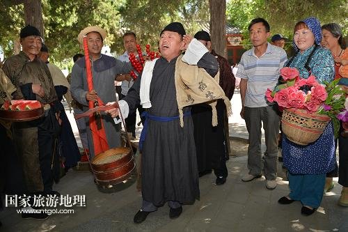 5月28日,傳統(tǒng)老北京吆喝表演者在后海小廣場(chǎng)表演叫賣吆喝。