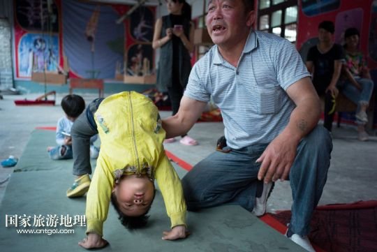 國家旅游地理 安徽阜陽5月31日訊 安徽省潁上縣三王村鄉(xiāng)村雜技學(xué)校成立于2007年。每年都有百余名農(nóng)村孩子來到這里學(xué)習(xí)雜技。