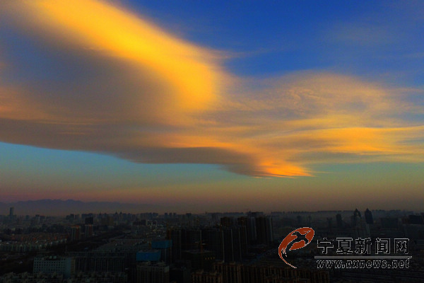 12月26日8時10分許,銀川上空出現(xiàn)奇云,宛如一只展翅飛翔的鳳凰浮于銀川西邊天空,伴著初升的朝陽與巍峨的賀蘭山為伴,格外美麗。 寧夏新聞網(wǎng)記者 祁瀛濤 攝