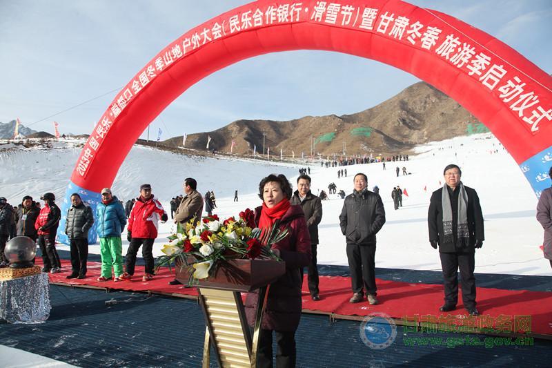 何偉局長用“祁連歡歌迎盛會,冰雪旅游聚英豪”來稱贊本次活動。她在致辭中指出,在張掖扁都口隆重舉行“中國·民樂扁都口全國冬季山地戶外大會暨甘肅省冬春旅游季活動”啟動儀式,這是我省體育、旅游兩個產(chǎn)業(yè)融合發(fā)展的重要舉措,也是我省淡季旅游市場啟動的重要標志。冰雪旅游是品位的追求,戶外運動是勇者的選擇。甘肅旅游資源十分豐富,冬季旅游資源獨具特色。為了給激情飛揚的旅游愛好者獻上豐盛的冬季旅游盛宴,全省各地都在積極謀動。特別是張掖市舉全市之力,精心策劃,全力推動,不僅在大景區(qū)建設等整體旅游工作上走在全省前列,而且在淡季旅游開發(fā)上搞得紅紅火火,做出了示范。在張掖啟動全省“冬春旅游季”活動,就是為了借張掖冬季旅游的火熱勢頭,帶動全省淡季旅游持續(xù)升溫。希望全省旅游系統(tǒng)以本次活動為契機,整合資源,相互借勢,形成合力,共同做熱、做大甘肅冬季旅游市場,使甘肅豐富多彩的冬春旅游資源轉(zhuǎn)化為旅游發(fā)展新的亮點、經(jīng)濟增長的新優(yōu)勢。